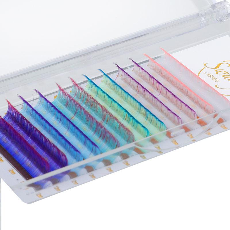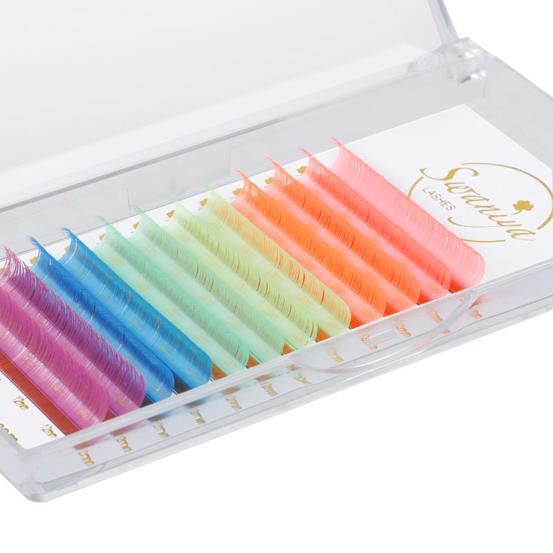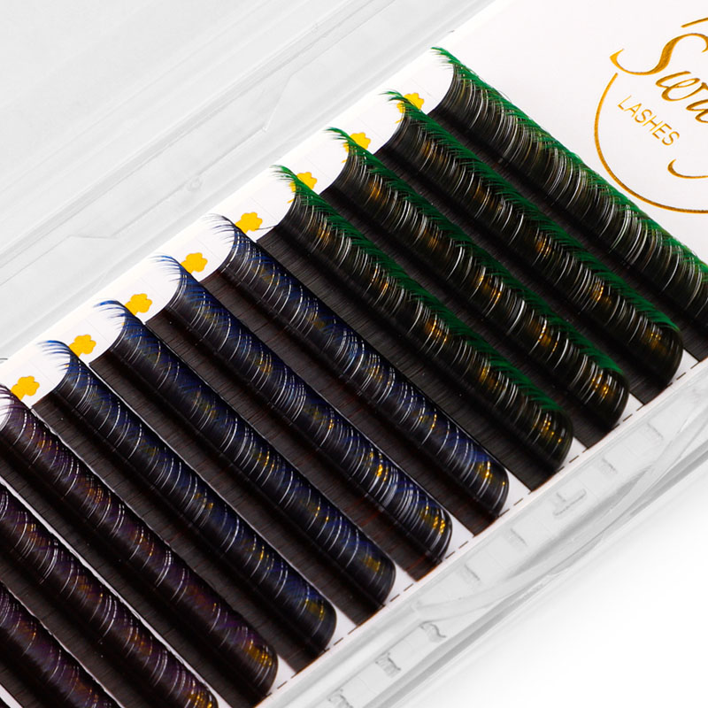تتميز امتدادات الرموش الملونة Swaniya بالألوان (Ombre Blue و Ombre Purple و White Pink Ombre ، إلخ) ، اللون العادي (الأحمر ، الوردي ، الأصفر ، الأبيض ، الأخضر ، الأزرق ، الأرجواني ، إلخ) ، لون النيون.